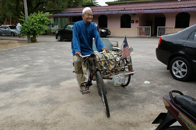 Haji Deraman always ride his trishaw to the surau. At 80 years old Haji Deraman is still quite healthy. His wife rode in the children's car instead of riding along with him as they usually do.